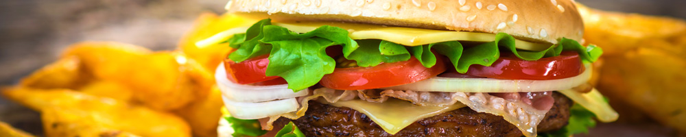 mit gegr. Burger, Zwiebeln, Gewürzgurken
